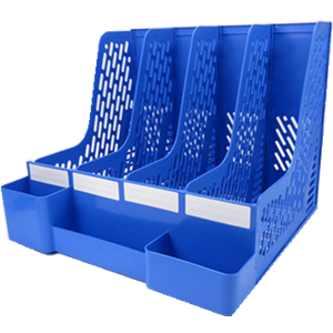 齊心B2034多功能文件架資料架4格書架藍(lán)色四聯(lián)收納架辦公用品