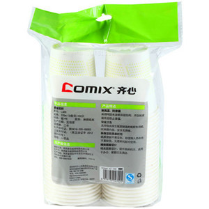 齊心L305健康紙杯50個(gè)裝8安一次性水杯辦公室用品高溫中號紙水杯